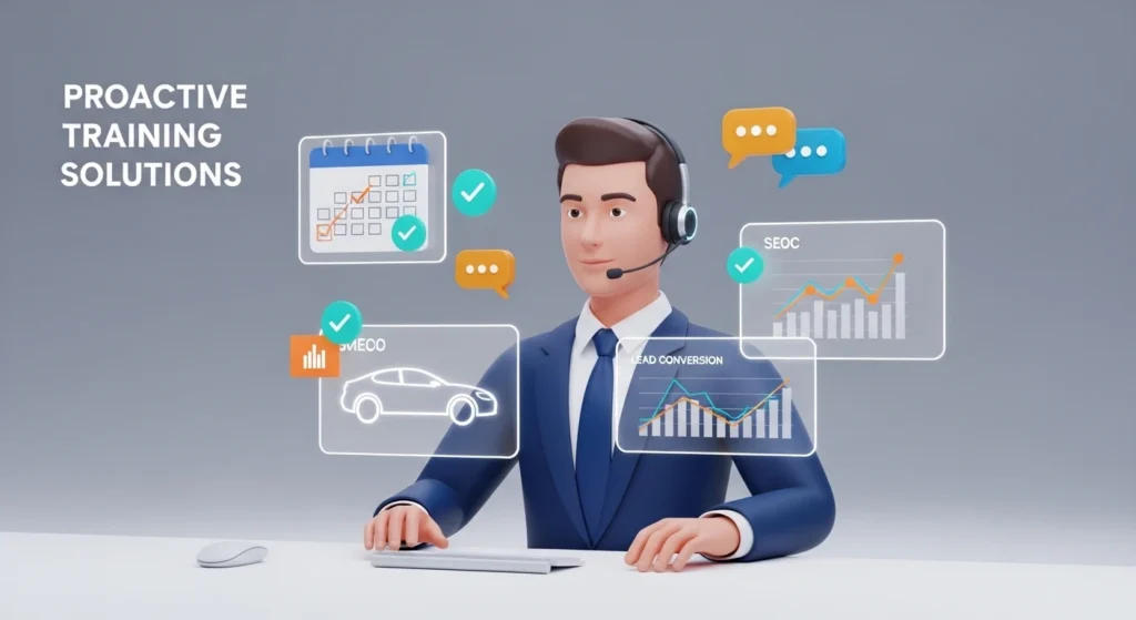 BDC representatives need training that’s different from general sales training. The skills are specific — phone tone, objection handling without visual cues, email writing, text message etiquette, CRM discipline — and they require practice in a format that mirrors real BDC work.